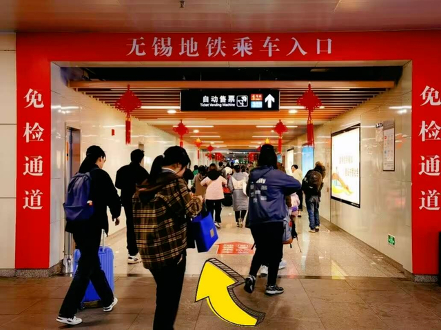 从无锡东站下车后,跟随地面指引的“地铁乘车 由此出站”标识方向进站乘车,即可缩短换乘路程。