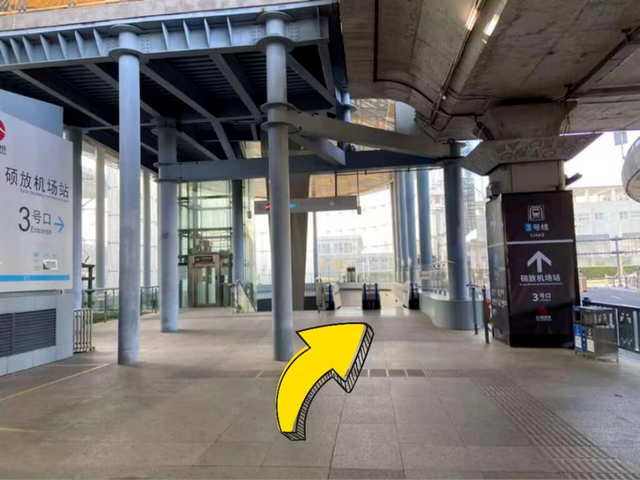 搭乘国内/国际航班抵达的乘客,可从硕放机场5号门或3号门出,左拐向前直走约5分钟后,就可以看到硕放机场地铁站3号口了。携带大件行李或有需要的乘客可以坐左边的垂梯下楼乘车。