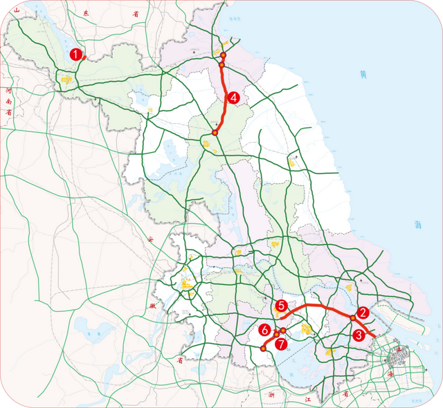 2、由西往东方向:G36宁洛高速南京段,G40沪陕高速宁合、扬州段,G42沪蓉高速镇江、常州、无锡段,G1516盐洛高速宿迁、淮安段,G2513淮徐高速徐州段,G4221沪武高速常州段,S58沪常高速无锡段。