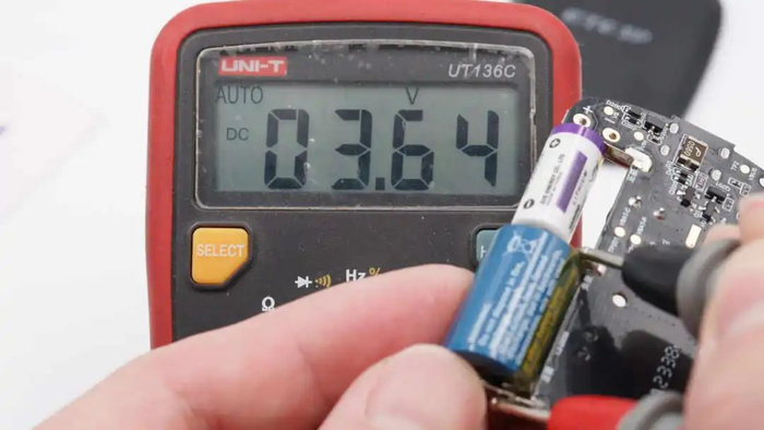测量内部锂/亚硫酰氯电池电压为3.64V。