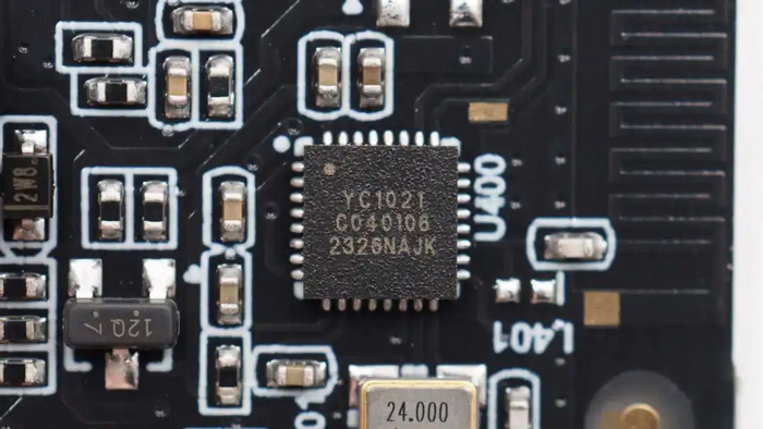 蓝牙芯片来自易兆微,型号YC1021,是一颗低功耗,高性能和高集成度的蓝牙三模解决方案,支持3.0BR/EDR+BLE+2.4G。