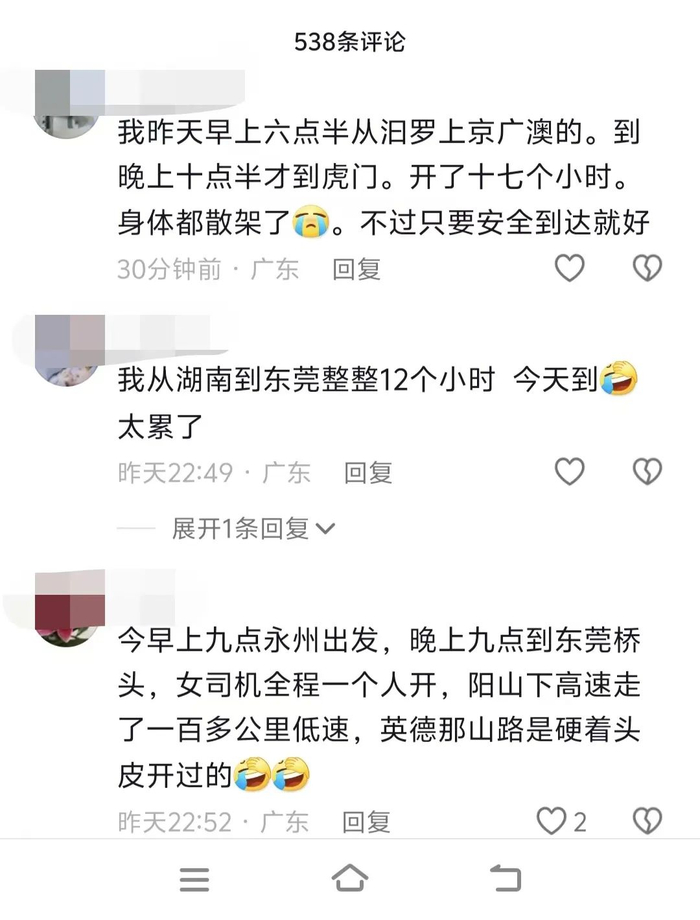 2月1日下午4时21分,网名为“再也不装修的小猪”、IP地址显示为湖南的博主发帖称,本想大年初三提前返程未成行,大年初四回广东,结果堵在路上。