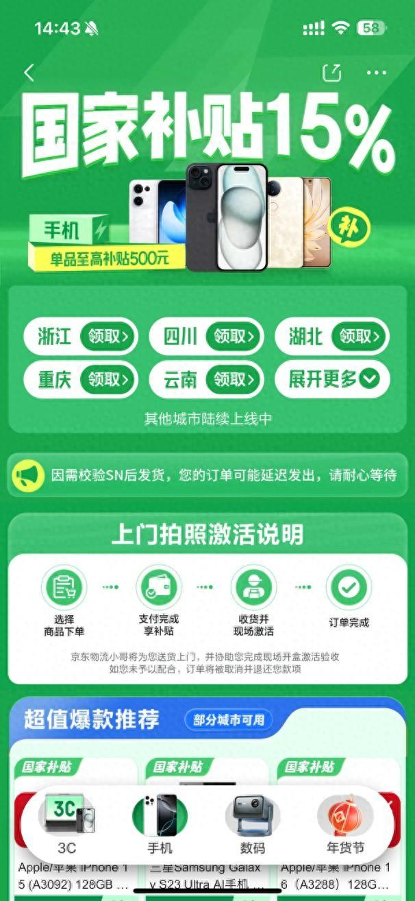 数码领域:2025年针对手机、平板、智能手表(手环)的国补,于1月20日正式开始,大部分地区的补贴将会持续到年底。