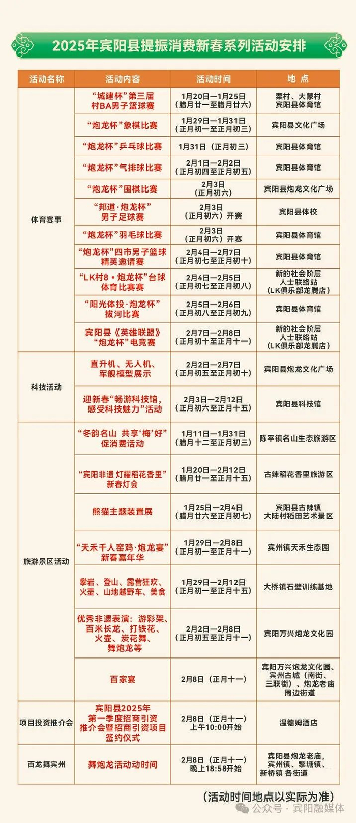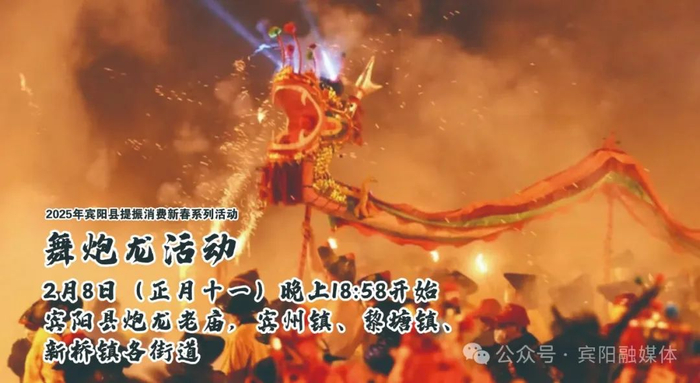 2月4日至2月12日,炮龙文化广场开展“新春乐购星光市集”活动;2月5日-2月8日,相继举办音乐节、“巳巳如意 宾阳吾乡”--非遗过大年暨宾阳首部非遗音乐舞蹈诗首演和“华灯盛景·宾阳雅韵”宾阳首届社区民族团结展演等活动。