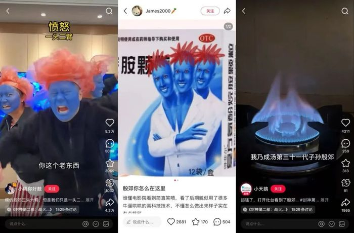 比如全死感的殷间一家人——殷寿、殷郊、妲己。虽然惊鸿一瞥,仍然有不错的讨论度,真正的中式哥特、乌氏邪典。若能引导网红带动群众cos美艳一家人,总比满世界发现三头蓝巨人强吧。