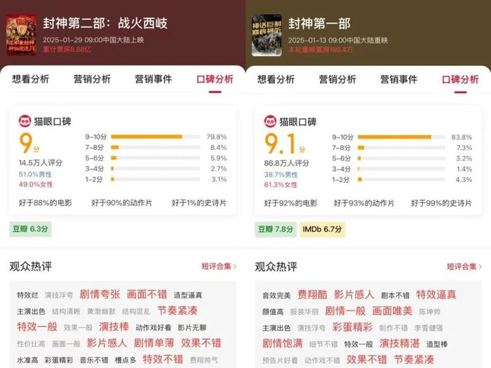 要知道,《封神第一部:朝歌风云》能够逆袭到26亿票房,大半是靠嗑cp、消费男色的女粉丝推动。《封神第一部:朝歌风云》女性购票用户占比高达六成。