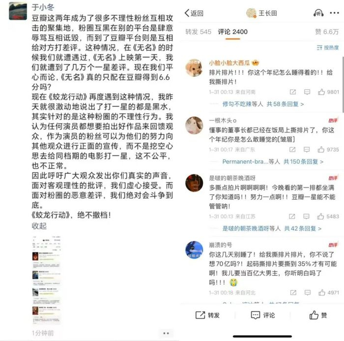 这些天,53岁的于冬四处奔走为《蛟龙行动》“喊冤”。60岁的王长田“躺平了”,却在被粉丝追着“鸡娃”,要其给《哪吒之魔童闹海》撕排片。