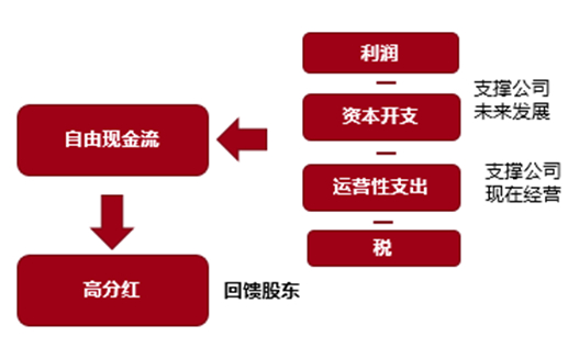 这个自由现金流就是企业可以自由支配的资金,也是股东分红回报的基础。所以分红派息只是一个结果,源源不断的自由现金流才是分红的源头活水和根本保障。企业把自己充裕的现金流分给股东一部分,这就是红利。说白了,自由现金流才是红利“之母”,这也是为什么大家喜欢把自由现金流高的公司叫做“现金奶牛”。高自由现金流的公司不一定高分红,但是高分红必须以自由现金流作为支撑。