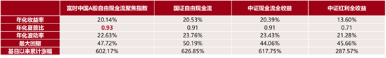 目前市场上的几个现金流指数中,富时自由现金流指数有何优势呢?直接上数据——