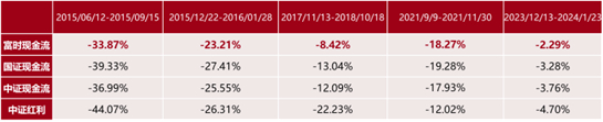数据来源:WIND,富时罗素,基日是指2013/12/31,时间区间:2013/12/31-2024/12/31。回调阶段是指富时现金流、国证现金流、中证现金流、中证红利指数均下跌的阶段。注:我国证券市场成立时间较短,过往历史数据不代表市场运行的所有阶段,过往历史数据并不构成基金业绩的保证。