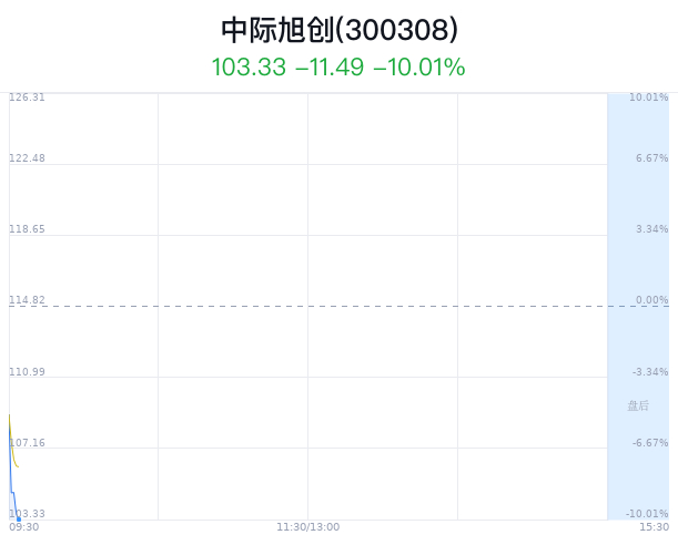02月05日,中际旭创(300308)股价大幅下跌,截至09点30分,中际旭创下跌5.14%,报108.92元/股,成交3.22亿元,换手率0.26%,振幅0.98%。