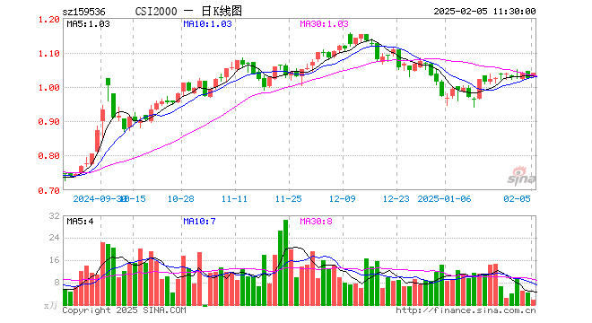 2月5日,截止午间收盘,中证2000指数ETF(159536)涨1.37%,报1.039元,成交额182.30万元。中证2000指数ETF(159536)重仓股方面,国星光电截止午盘涨3.10%,纽威数控涨2.62%,维维股份涨0.30%,富春环保跌1.88%,新联电子跌1.94%,三德科技涨3.00%,凌志软件涨5.04%,凯立新材涨0.50%,鲁银投资跌0.17%,星帅尔跌0.10%。