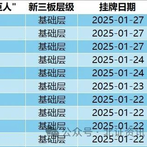龙年最后一个交易日,维卓致远、经纬支承、欣战江3家企业在新三板挂牌,至此2025年1月总共有27家企业登陆新三板。