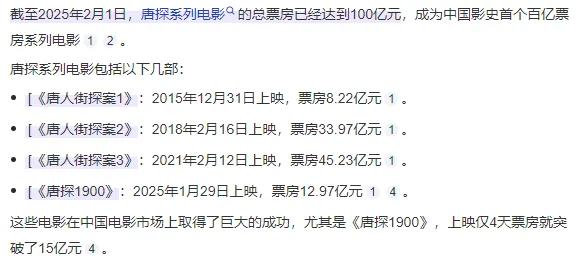 王宝强的《唐探》(唐人街探案)系列,是第一个票房超100亿的系列电影,但《唐探》用了10年时间,拍了4部电影;《哪吒》从筹划到100亿,用了大约9年时间,但只拍了2部电影。