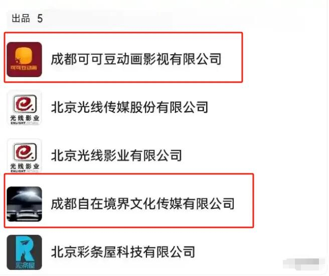 根据公开消息,出品方中5家公司,其中成都可可豆动画和成都自在境界两家公司,都是饺子的公司;另外三家出品方,都属于光线影业。其中,成都可可豆56%的股权,自在境界51%的股权,都属于饺子。