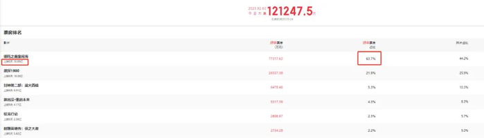其上映首日票房:4.87亿,1月30日票房4.8亿,1月31日票房6.18亿,2月1日票房7.30亿,2月2日票房7.72亿。