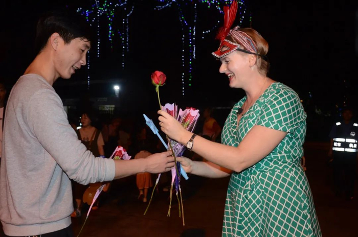 现场设多个爱情主题打卡点,还设有浪漫求婚舞台、相亲活动和露天电影活动。