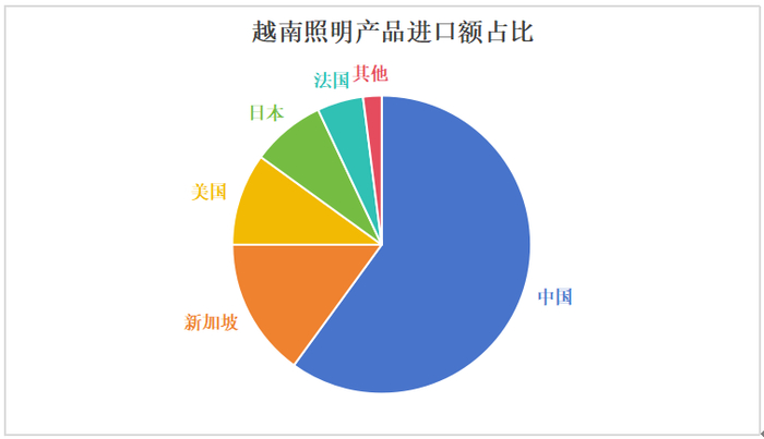 从进口来源地来看,越南照明产品进口来源广泛,主要从中国、新加坡、美国、日本、法国等国家进口。其中,中国是越南最大的照明产品进口来源国,根据新思界行业研究中心发布的《2024年越南照明产品行业市场现状及海外企业进入可行性研究报告》显示,在2022年,中国出口到越南的照明产品金额为13.8亿美元,中国凭借完善的照明产业链、强大的生产制造能力和高性价比的产品,在越南照明产品进口市场中占据重要地位。新加坡是越南第二大照明产品进口来源国,占比约 15%,主要提供一些高端、创新型的照明产品。美国、日本和法国等国家的照明产品在越南进口市场中也占有一定份额,分别占比约 10%、8% 和 5%。