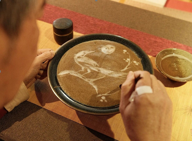 汤瓶轻点,以清水作画,