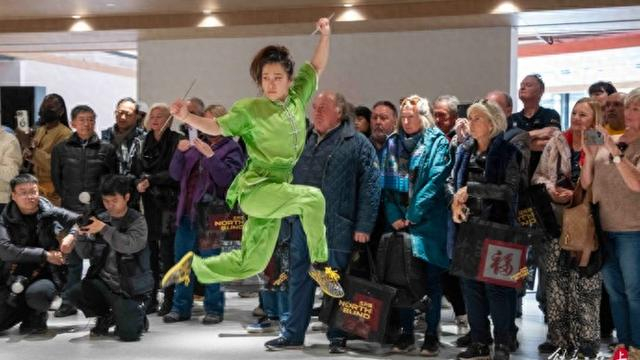 题图来源:上海为北外滩邮轮入境游客提供精彩的功夫表演。 图片来源:孟雨涵 摄。