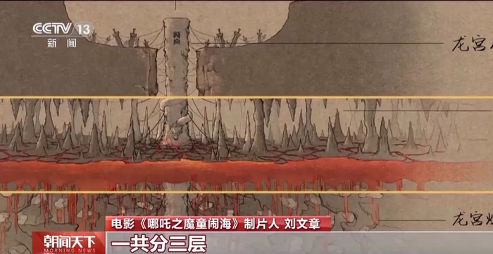 除了角色设计之外,不少观众好奇的,海底龙宫有几层?每层都是什么用途?主创团队也进行了揭秘。