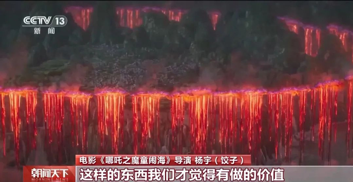 电影《哪吒之魔童闹海》导演 杨宇(饺子):我们最难的几个特效就全部时间都是花到了研发上面去了。一定要做观众没见过的,能够造成强烈的视觉冲击的,或者说能够有一种非常新颖的艺术表现形式,能给观众更多的美感刺激的,这样的东西我们才觉得有做的价值。