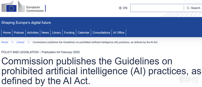 智东西2月5日报道,昨天欧盟公布了其《人工智能法案》(AI Act)的指导方针草案,对雇主、网站、平台等主体合规利用AI技术的方式和情景,作出了进一步的解释说明。不过,这些指导方针并不具备法律约束力,主要是《人工智能法案》的执行参考,最终解释权归欧盟法院。