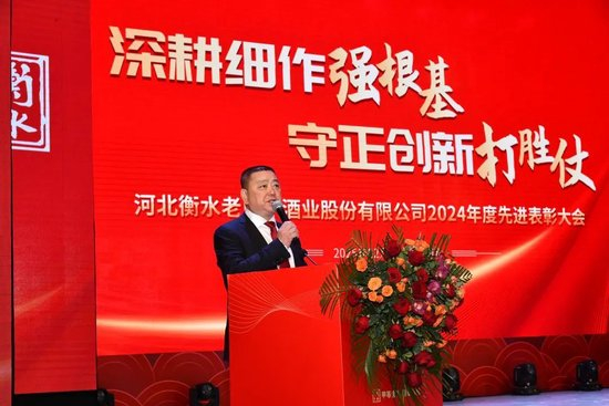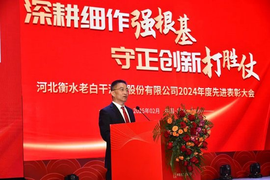 表彰会最后,河北衡水老白干酿酒(集团)有限公司党委副书记、河北衡水老白干酒业股份有限公司总经理赵旭东做总结发言,赵总高度赞扬了获奖员工的卓越贡献,他们用无私奉献、开拓创新的务实精神,生动诠释了公司“传承千年匠心,酿造美好生活”的使命担当,他们的奋斗历程将永远铭刻在公司的发展丰碑之上。