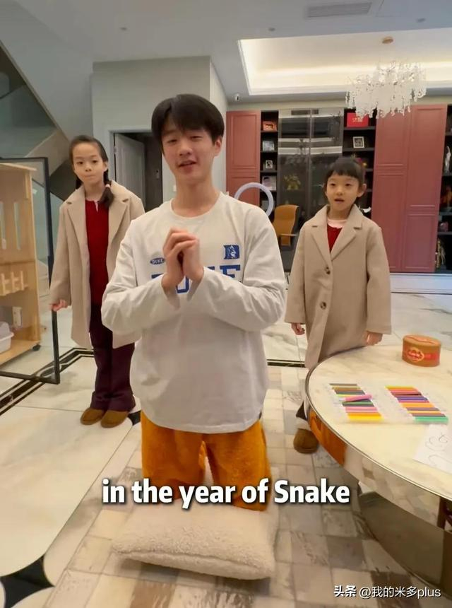 他先是用流利的中文说出了一连串吉祥话,话语中满是对父母的祝福和对新年的期待。随后,按照爸爸的要求,他又用英语将拜年词说了一遍。
