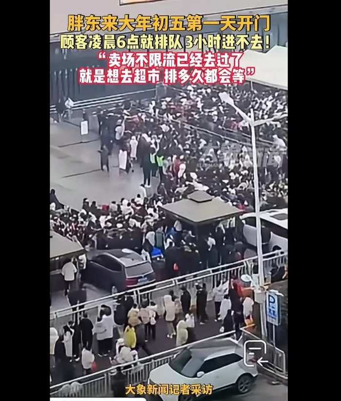 值得注意的是,今年春节胖东来依然火爆,据大象新闻报道,2月2日,胖东来大年初五第一天开门,顾客凌晨6点就排队,3小时进不去!有顾客接受采访时表示,“卖场不限流已经去过了,就是想去超市,排多久都会等。”