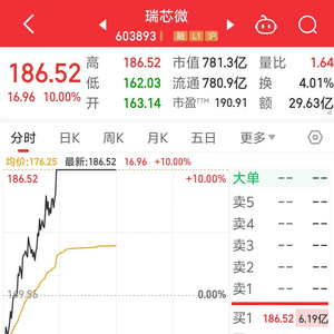 2月6日,端侧AI概念持续走高,瑞芯微(603893.SH)盘中涨停创历史新高,报186.52元/股,总市值781.3亿元。