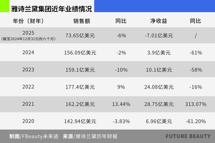 截至2024年12月31日的前6个月,雅诗兰黛集团录得销售额54.8亿美元(约399亿元人民币),同比下滑6%;净亏损达到7.01亿美元(约51亿元人民币),而去年同期的营业利润为6.72亿美元(约48.9亿元人民币)。公司在销售增长上仍然面临着巨大挑战。