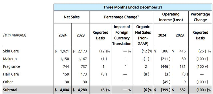 不过,尽管净销售额下降,但得益于集团利润恢复和增长计划(“PRGP”)的推动,报告和调整后毛利率增长310个基点至76.1%。在沟通会上,雅诗兰黛表示,公司迄今在PRGP方面取得了重大进展,“在本财年上半年实现了超过60%的2025财年目标”。