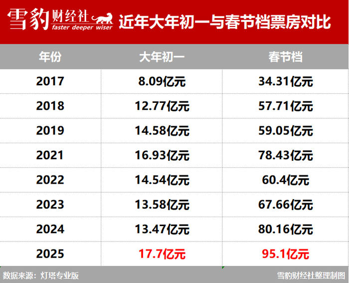 据灯塔数据,春节档首日票房17.7亿元,观影人次达到3446.3万,双双打破中国影史单日大盘最高纪录。档期总票房95.1亿元,是近8年来的最高成绩,早在2月3日(大年初六)就已超越预测票房成绩。