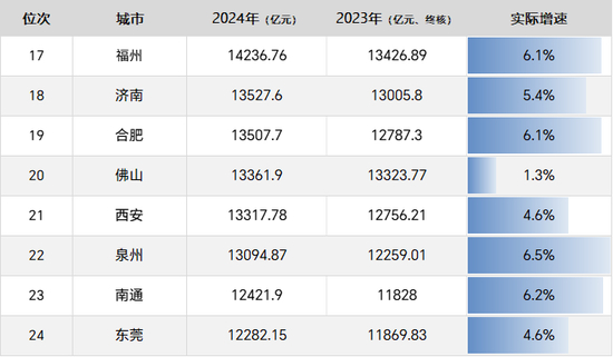 而根据官方发布,西安2024年GDP为13317.78亿,增速4.6%,锁定全国第21位,距20强一步之遥,紧追前述合肥、济南多城,前后差距缩减到200亿以内。需要注意的是,2023年西安GDP最终修订为12756.21亿,相较初核调增约746亿。