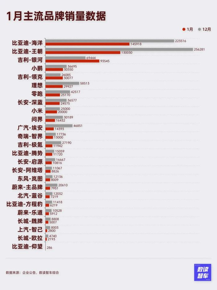1-2月是车企销量较为低迷的周期,假期叠加春节,车企的动作往往不大,发挥空间不多,销量参考意义不算大。这两个月是狂奔后的短暂宁静,为惨烈的2025年蓄势。