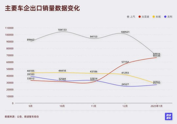 如果包含燃油车,奇瑞、上汽可能还是出口的代表性车企,不过这样的格局在未来注定会发生巨变,1月已经展现出了一定的迹象。