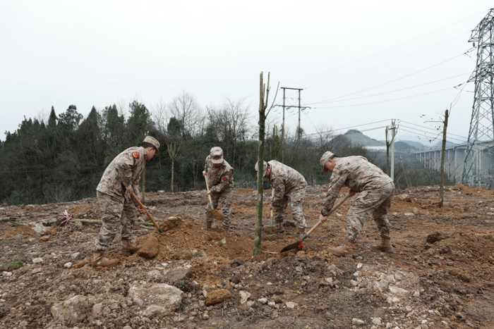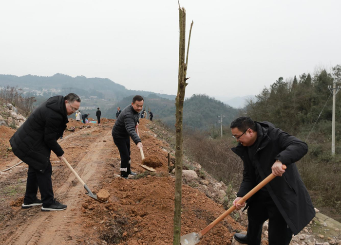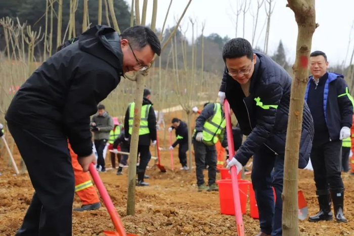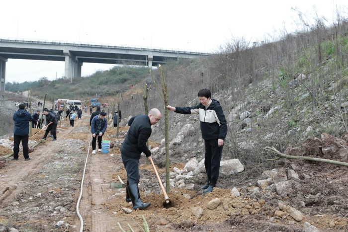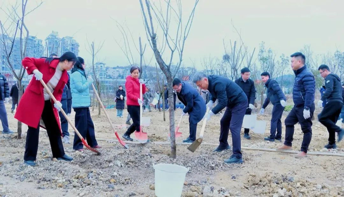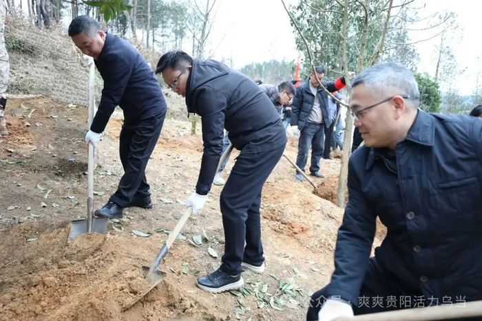 大家协同配合,接连种下桂花、樱花、红叶李、玉兰、香樟等一批树苗。在大家的共同努力下,一棵棵树苗迎风而立,为乌当大地添上了一片新绿,也为乌当高质量发展画卷再添绿色底蕴。