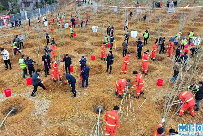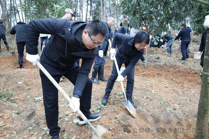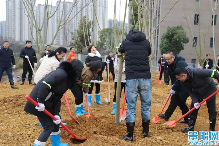 2月5日,蛇年春节假期后的上班第一天,观山湖区干部职工在宾阳街道开展2025年义务植树活动。