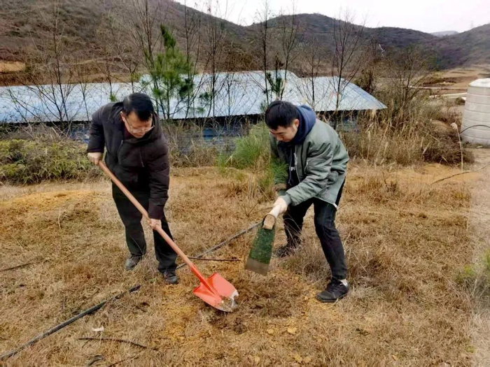 在高峰镇华山松良种场植树现场,参加植树的人员三人一组、五人一群,分工协作、默契配合,铲土、扶苗、填坑、浇水,呈现出一片热火朝天的劳动景象。经过大家的努力,一棵棵树苗被成功种下,为新春全面复工复产开了个好头。