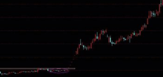 2、价格尾盘跳水,次日低开高走,价格每次回落的幅度明显小于大盘