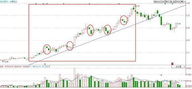 以山鹰纸业为例,该股自今年6月底开启主升浪行情,截止9月底都为上升趋势。在此期间,股价一直呈上涨态势,但是仔细分析会发现,主力在拉涨过程中,不断用剧烈震荡、阴阳交替的方式洗盘。正因为不断洗盘,所以才能稳定上涨,不然散户持股过多,很难长期形成合力。