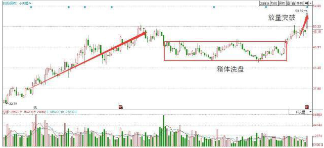 最常见的当然是箱体洗盘,我们看小天鹅A,今天放量大涨超过8%,但是在此之前,该股持续高位震荡,股价在43~48区间运行,呈箱体形态,这其实是对上一波的洗盘。通过箱体震荡洗盘,剥离散户获利筹码,主力提示控盘程度,为下一步拉涨做足准备。