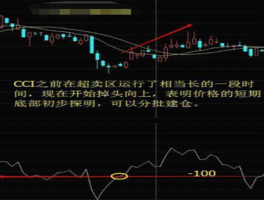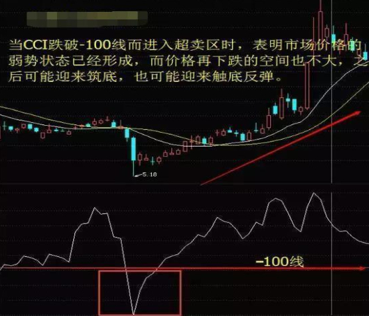 1、当CCI跌破-100线而进入超卖区时,表明市场价格的弱势状态已经形成,而价格再下跌的空间也不大,之后可能迎来筑底,也可能很快迎来触底反弹。