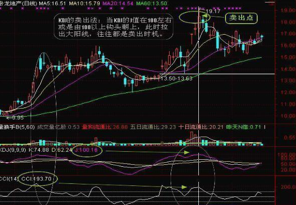 KDJ和CCI在股票操作中,联合起来使用,能收到比较好的效果。那么,怎样使用呢?就是KDJ指标以J线为主和CCI指标线互相配合,进行分析。下面以几个图解进行讲解这一方法的使用。