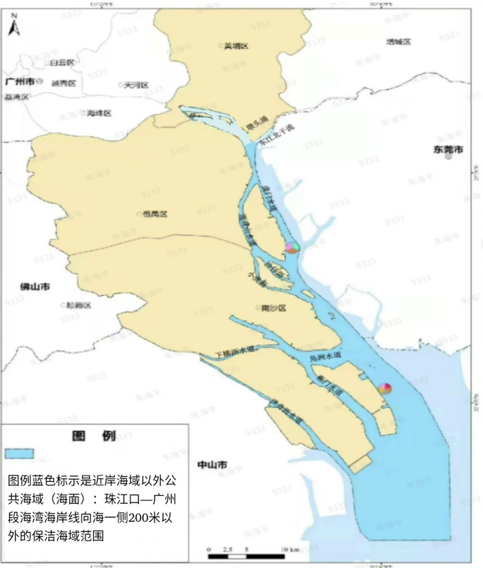 服务范围:近岸海域以外公共海域(海面):珠江口-广州段海湾海岸线向海一侧200米以外的海域,共约334平方公里海域的海洋垃圾进行清理,具体范围包括虎门水道、莲花山水道、沙仔沥、小虎沥、下横沥水道、凫洲水道、蕉门水道、洪奇沥水道。