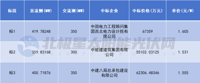此项目分为3个标段,中标企业为中国电力工程顾问集团西北电力设计院有限公司、中能建建筑集团有限公司、中建八局总承包建设有限公司。