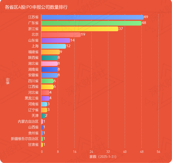 2025年1月A股IPO首发募资总额为7.69亿,位居国内第六位。