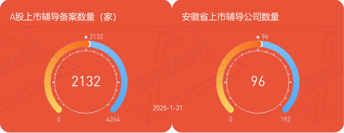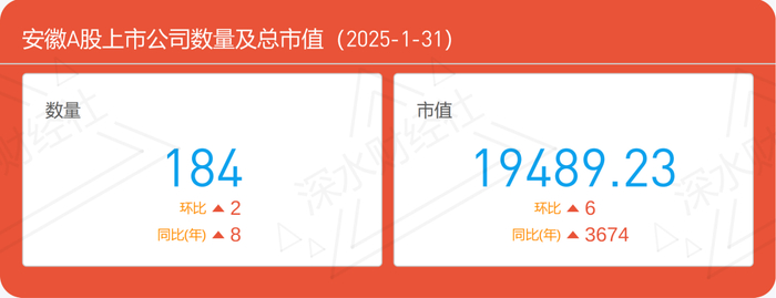 截至2025年1月31日,安徽省A股上市公司总数达到184家,总数位居国内第七位。当月新增两家,无退市公司。