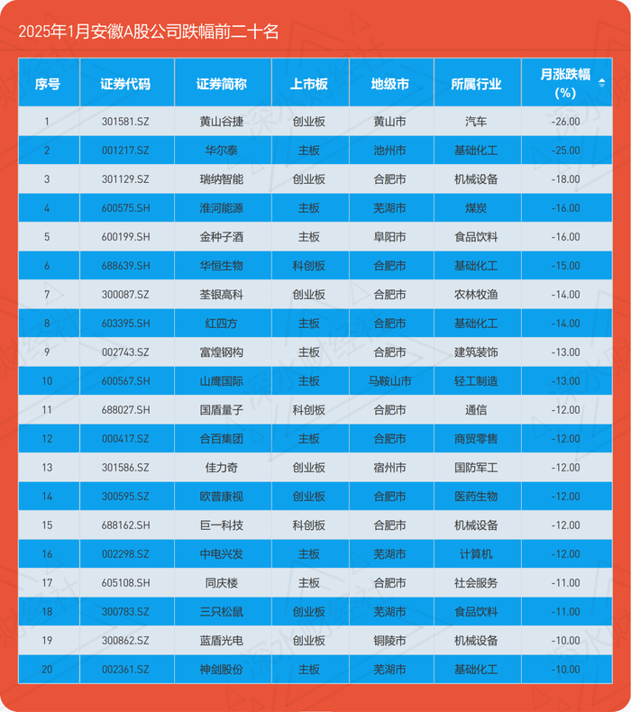 今天发布的是【2025年1月安徽A股上市公司发展报告】。